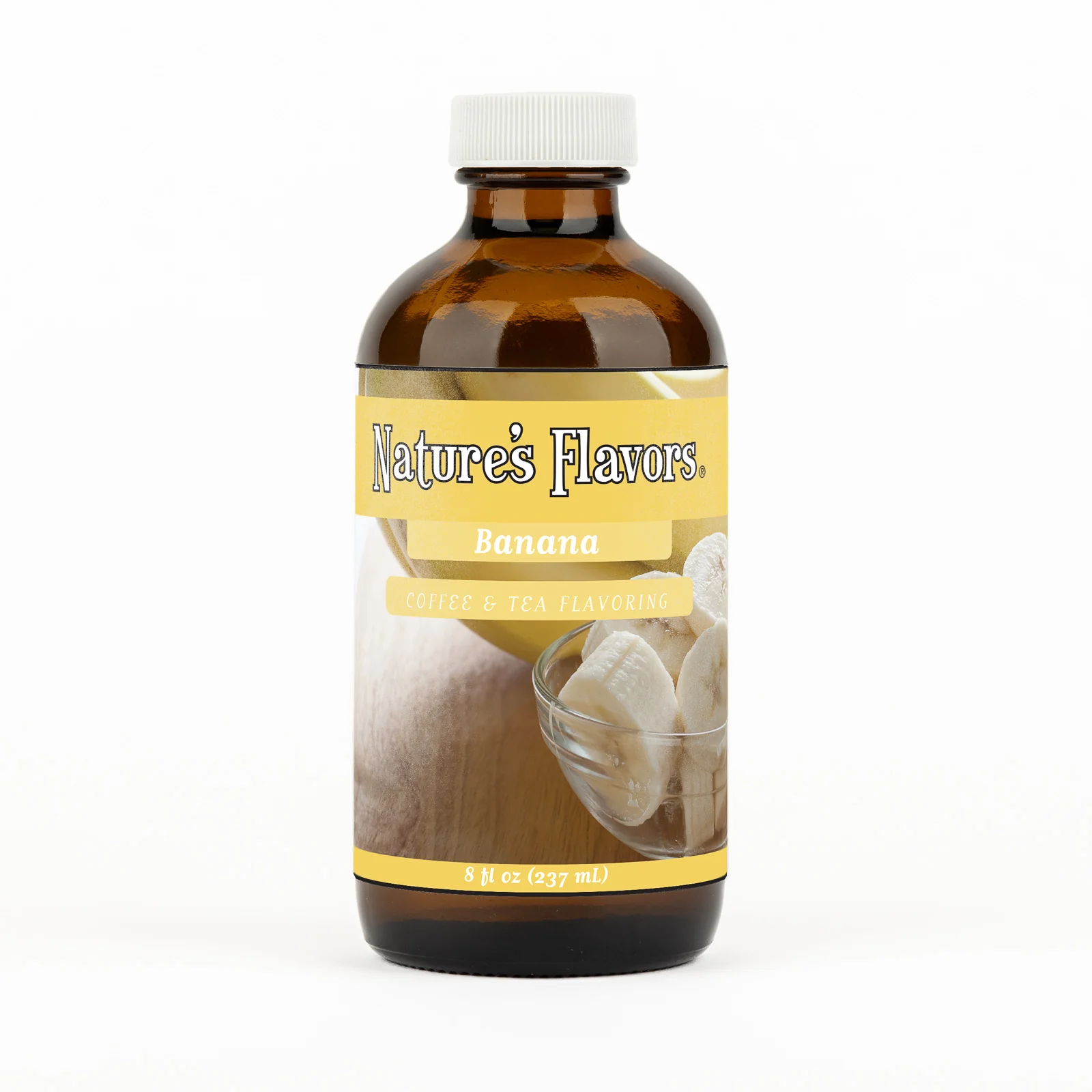 The concentrated formula provides efficient flavoring with minimal quantity required, offering cost-effective enhancement for large batches. The banana profile delivers recognizable tropical notes with smooth, sweet characteristics that complement both coffee's robust qualities and tea's delicate nuances. As used in this application, the product contains no calories, carbohydrates, sugar, or fat content.